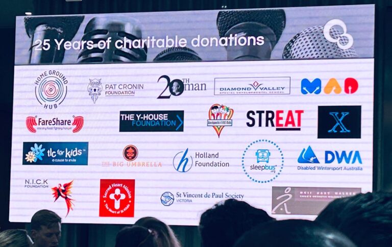 As annual attendees of the Commentators Club luncheon, Beacon Consult are proud to support grassroots charities. From 1998 onwards funds generated beyond the cost of the luncheon are donated to a different grassroots charity each year. This event has donated over half a million dollars to a range of charities including: The Sacred Heart Mission, the N.I.C.K Foundation, TLC for Kids, Disabled Wintersports Association, FareShare, STREAT, 20th Man, The Y-House Foundation and SleepBus to name a few.